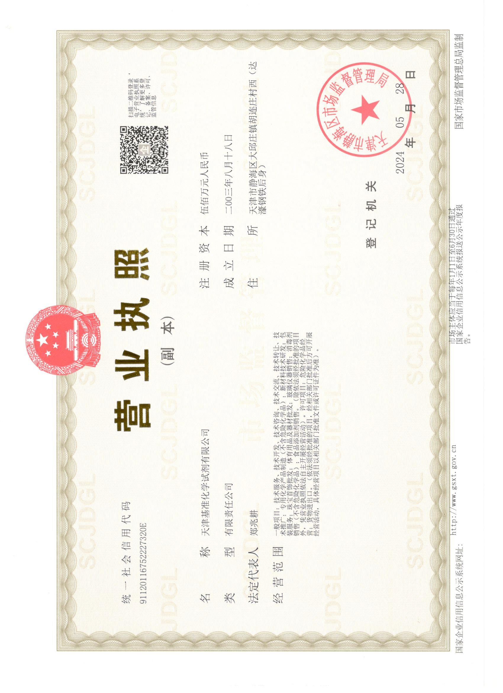 天津基準化學試劑有限公司以持續的創新研發為支撐,視客戶取得成功為己任,力求將最好的產品、優質的服務奉獻給我們的客戶,為客戶提供優質的產品
